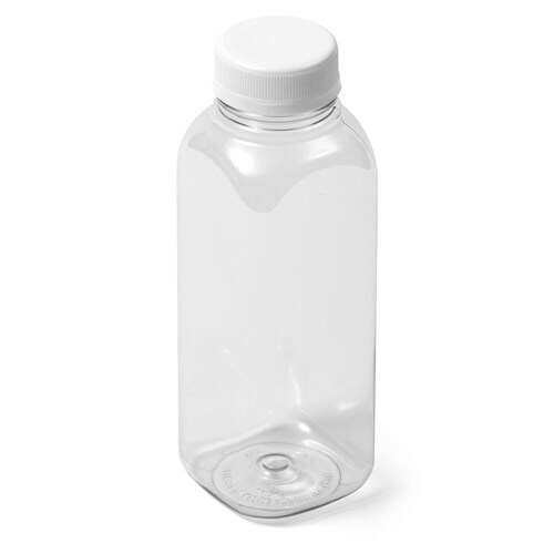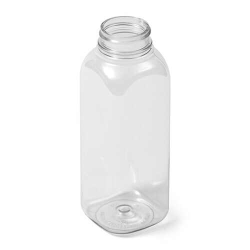 These 12 oz Clear PET (Polyethylene Terephthalate) Plastic Square bottles are a popular choice in the beverage industry, but can be used for a variety of products. With a standard 38-400 neck finish, these bottles are easy to fill with any non-carbonated beverages, sauces, candy, popcorn, soup mixes, or dry goods and provide high product visibility. These plastic French square bottles are lightweight, and take up less space than round bottles on the shelf. These bottles are BPA free, FDA approved, and proudly made in the USA