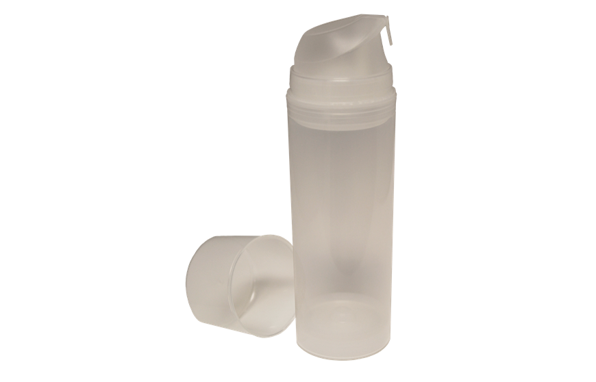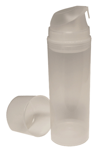 Kaufman Container stocks a full line of airless dispensing systems including airless pump bottles. Our 150 ml Natural airless bottle can be paired with the 1 ml airless pump and Clear gloss overcap. In addition to the 150 ml airless bottle, we also stock 2 other sizes of airless bottles (50 ml and 100 ml) in White and Natural. Our airless pump bottles are commonly used for cosmetic, pharmaceutical and personal care products.
