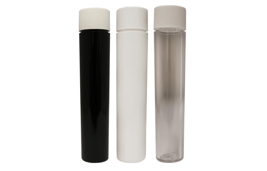 Kaufman Container provides a variety of joint tubes, cannabis packaging and vape packaging. This 3.33" PS plastic vial is available in White, Black and Clear and a 16 mm child resistant cap is included. This plastic vial is commonly referred to a joint tube or a joint container as it is designed to hold most vape cartridges and pre-rolled cannabis products.