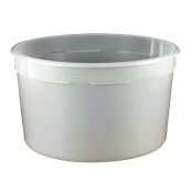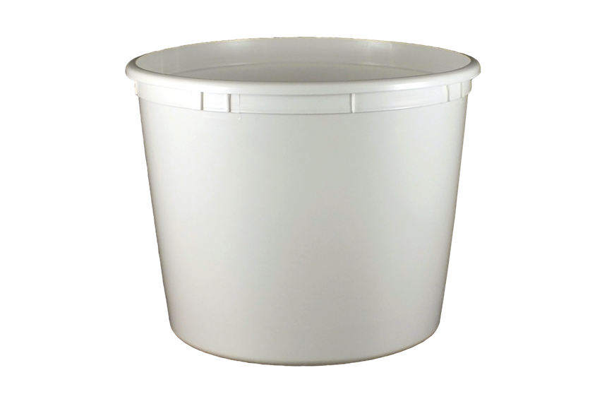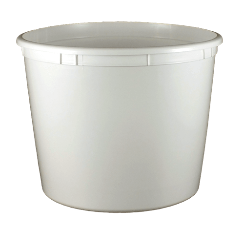 Kaufman Container provides plastic tubs in a variety of materials, sizes and colors. This 166 oz White thin wall Polypropylene plastic tub does not include a handle, but can be paired with lid #1033435. Our round plastic tubs are great for food products such as yogurt, cottage cheese and sour cream.
