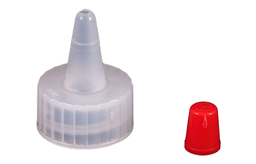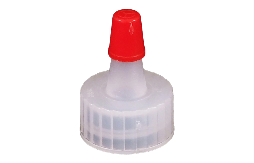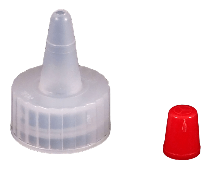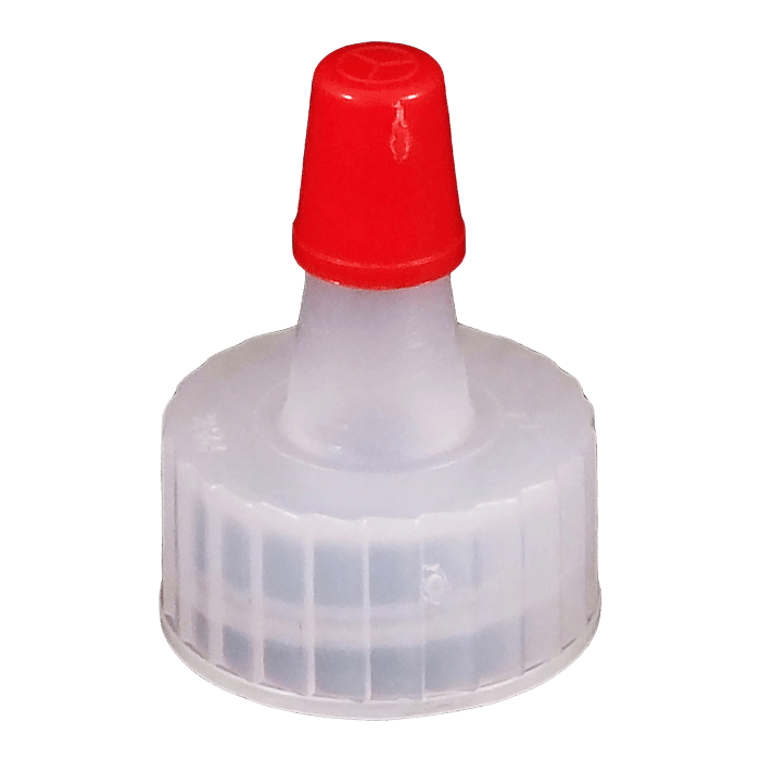 Kaufman Container provides a variety of plastic dispensing caps including yorker caps, disc top caps and spout caps. This 18-400 Natural LDPE Plastic Yorker cap has a .030 orifice, contains no hole and the red sealer tip is attached. Yorker spout caps are great for dispensing products such as condiments and used frequently in the crafting industry.
