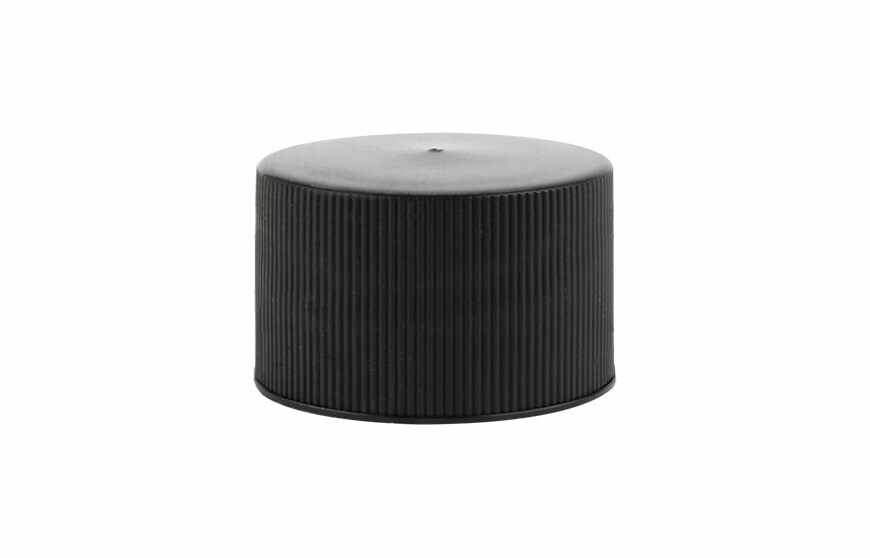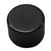 Kaufman Container supplies a variety of plastic caps and closures including screw caps, dispensing caps and child resistant caps. This 20-410 Black PP Plastic screw cap has a ribbed skirt and a PE Foam liner. Due to the polypropylene plastic material, this cap has a high heat resistance and good chemical resistance. Plastic screw caps are also referred to as continuous thread caps or CT caps.