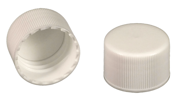 Kaufman Container stocks a variety of plastic caps and closures including screw caps, dispensing caps and child resistant caps. This 24-410 White PP Plastic screw cap has a ribbed skirt and a PE foam liner. Due to the polypropylene plastic material, this cap has a high heat resistance and good chemical resistance. Plastic screw caps are also referred to as continuous thread caps or CT caps.