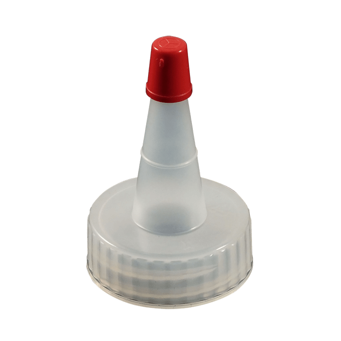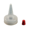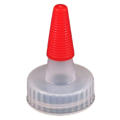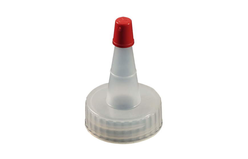 Kaufman Container provides a variety of plastic dispensing caps including yorker caps, disc top caps and spout caps. This 28-400 Natural LDPE Plastic Yorker cap has a .030 orifice and the regular red sealer tip is attached. We also stock the same cap with no hole and the long red sealer tip (#1002008). Yorker spout caps are great for dispensing products such as condiments and used frequently in the crafting industry.
