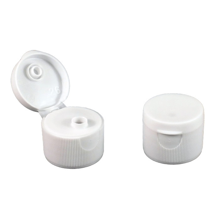 28-410 White PP Plastic Ribbed Flip Top Snap Cap