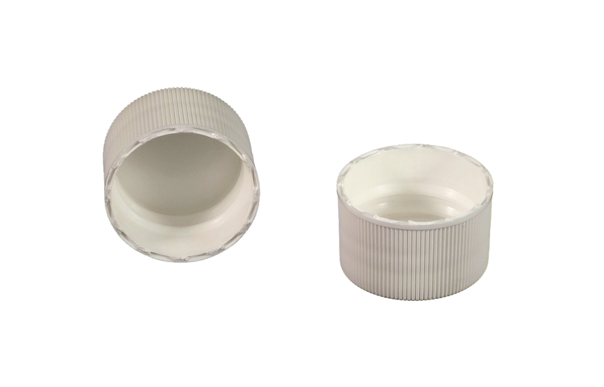 Kaufman Container stocks a variety of plastic caps and closures including screw caps, dispensing caps and child resistant caps. This 28-410 White PP Plastic screw cap has a ribbed skirt and a PE foam liner. Due to the polypropylene plastic material, this cap has a high heat resistance and good chemical resistance. Plastic screw caps are also referred to as continuous thread caps or CT caps.
