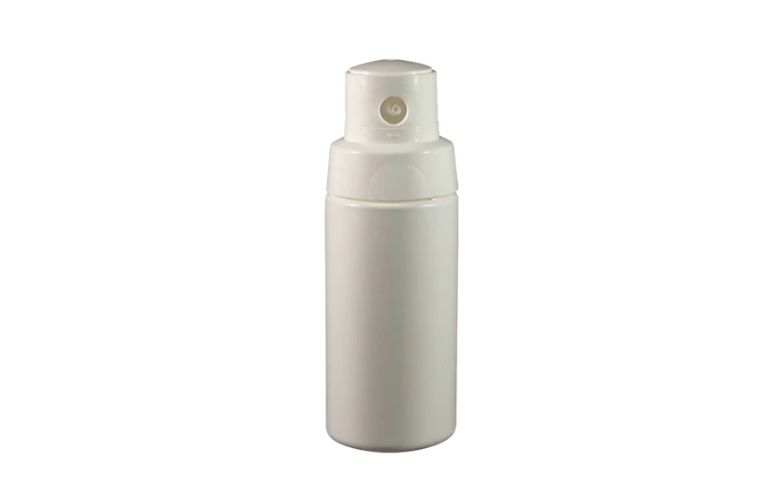 This custom powder sprayer can be paired with our 4 oz Powder Dispenser Bottle (#1088696). The innovative design of this package allows you to twist open the cap and squeeze the bottle to dispense your powder product. This Powder Sprayer dispenses 2.4 oz of your favorite powder product. We have several customers currently using it as a dry shampoo bottle and cap, but it can be used for other foot powder sprays, baby powder sprays and other body powder sprays.