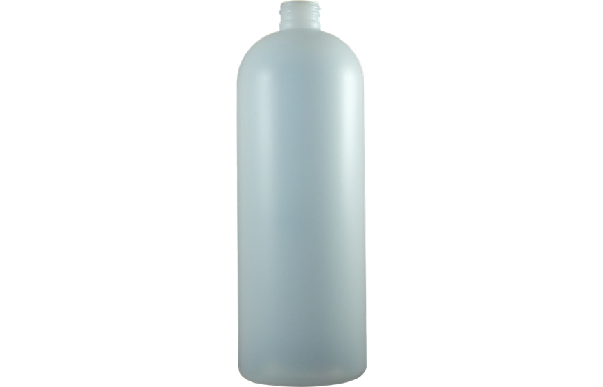 Kaufman Container stocks a variety of plastic bottles including this 32 oz Natural HDPE Plastic Cosmo Round bottle. Also known as Bullet Rounds, they can be used for several industries including personal care, household chemical and pet/vet.