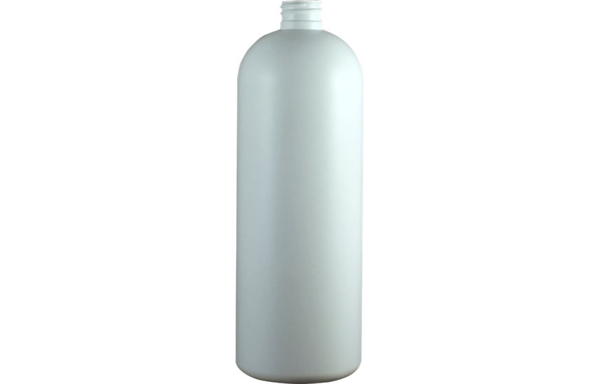 Kaufman Container stocks a variety of plastic bottles including this 32 oz White HDPE Plastic Cosmo Round bottle. Also known as Bullet Rounds, they can be used for several industries including personal care, household chemical and pet/vet.