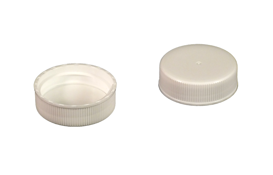 Kaufman Container stocks a variety of plastic caps and closures including screw caps, dispensing caps and child resistant caps. This 33-400 White PP Plastic screw cap has a ribbed skirt and a PE Foam liner. Due to the polypropylene plastic material, this cap has a high heat resistance and good chemical resistance. Plastic screw caps are also referred to as continuous thread caps or CT caps.
