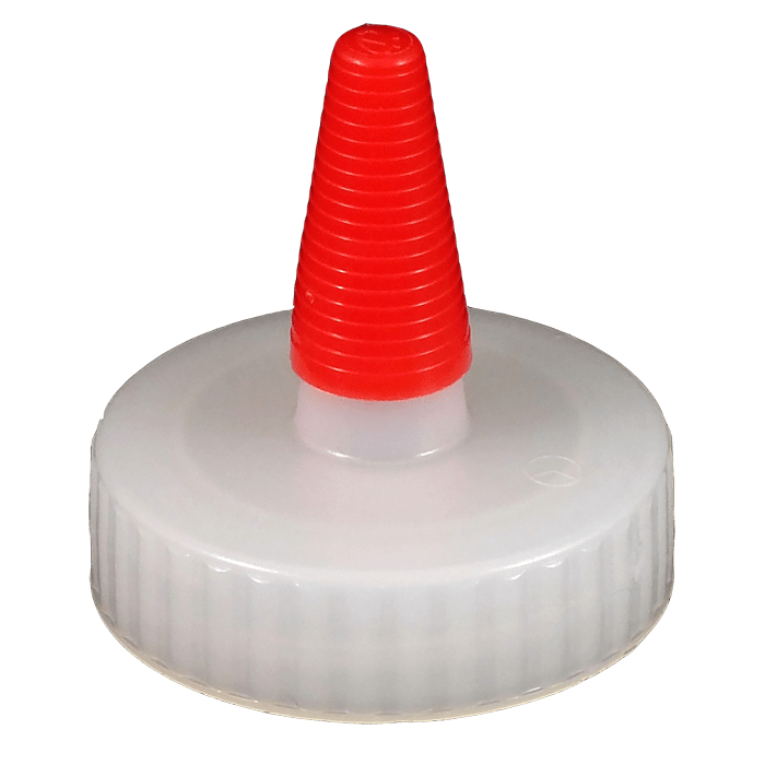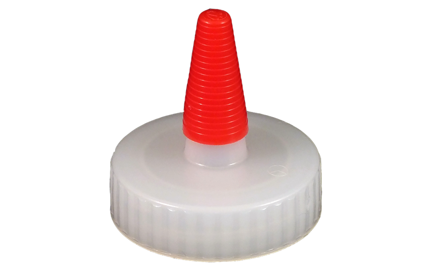 Kaufman Container provides a variety of plastic dispensing caps including yorker caps, disc top caps and spout caps. This 38-400 Natural LDPE Plastic Yorker cap contains no hole and the long red sealer tip is attached. We also stock the same cap with a .090 orifice and the regular red sealer tip (#6000135). Yorker spout caps are great for dispensing products such as condiments and used frequently in the crafting industry.