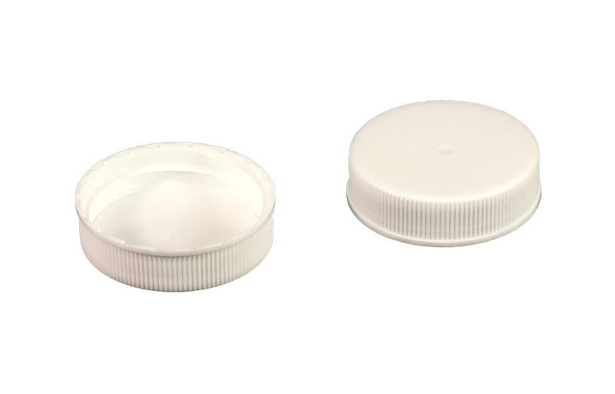 Kaufman Container stocks a variety of plastic caps and closures including screw caps, dispensing caps and child resistant caps. This 38-400 White PP Plastic screw cap has a ribbed skirt and a PE Foam liner. Due to the polypropylene plastic material, this cap has a high heat resistance and good chemical resistance. Plastic screw caps are also referred to as continuous thread caps or CT caps.