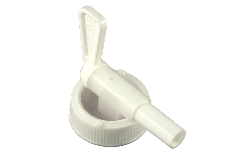 Kaufman Container stocks a variety of dispensing caps including this 38 mm Quick Serve Tap. This cap has an 8 mm orifice and is commonly used with our 1 Gallon Natural LDPE Cubitainer.