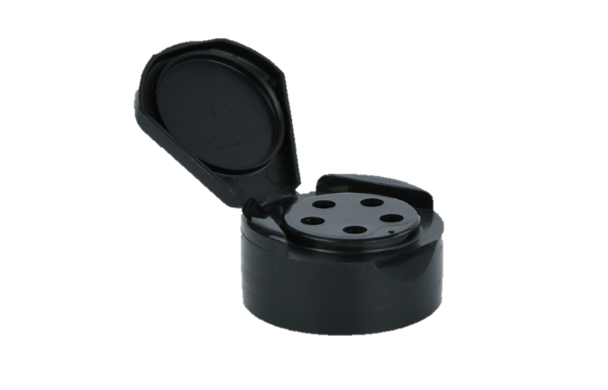 Kaufman Container supplies a variety of spice caps, flapper caps, spice grinders and other caps for spices. This flip top Black spice cap has a 43-485 neck finish and multiple liners are available. In addition to the 43-485 cap, we also provide the 53-485 and 63-485 style in Red or Black. This easy to use spice cap can be paired with one of our wholesale glass spice jars or a plastic spice jar. MOQ: 25,000 pieces
