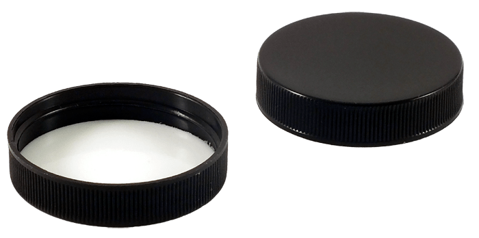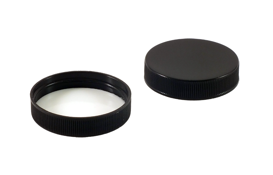 Kaufman Container stocks a variety of plastic caps and closures including screw caps, dispensing caps and child resistant caps. This 48-400 Black PP Plastic screw cap has a ribbed skirt, a smooth top and a PE foam liner. Due to the polypropylene plastic material, this cap has a high heat resistance and good chemical resistance. Plastic screw caps are also referred to as continuous thread caps or CT caps.