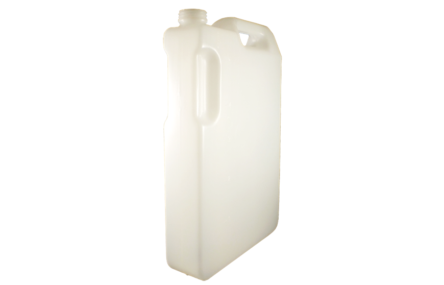 Kaufman Container stocks a variety of 5 gallon pails, gallon jugs and cubitainers. This 2.5 Gallon Natural HDPE plastic jug is also known as a Hedpak and has a 38-400 neck finish. It can be used for a variety of industries including industrial chemical and pet/vet.