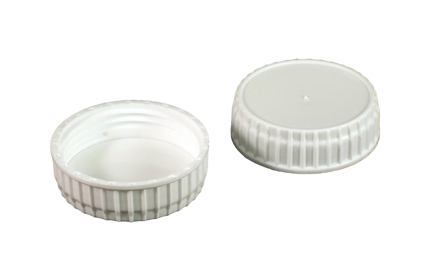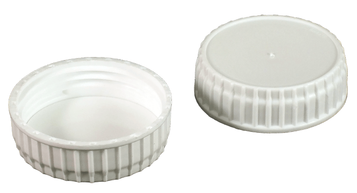 Kaufman Container stocks a variety of plastic caps and closures including screw caps, dispensing caps and child resistant caps. This 63 mm White PP Plastic screw cap has a ribbed skirt, a matte top and a PE Foam liner. Due to the polypropylene plastic material, this cap has a high heat resistance and good chemical resistance. Plastic screw caps are also referred to as continuous thread caps or CT caps. This specific cap pairs well with item #1034100.