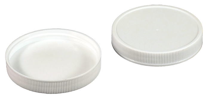 Kaufman Container stocks a variety of plastic caps and closures including screw caps, dispensing caps and child resistant caps. This 70-400 White PP Plastic screw cap has a ribbed skirt, a matte top and a PE Foam liner. Due to the polypropylene plastic material, this cap has a high heat resistance and good chemical resistance. Plastic screw caps are also referred to as continuous thread caps or CT caps.