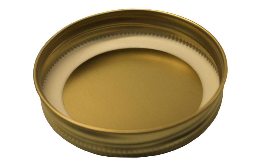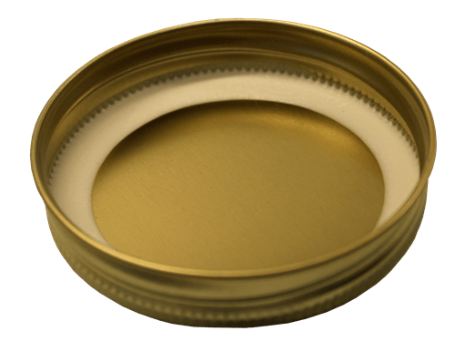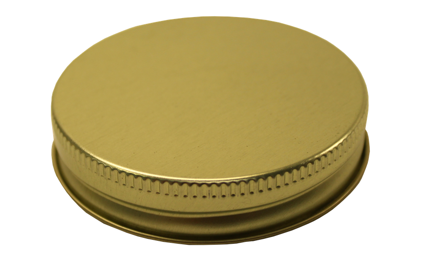 Kaufman Container supplies a variety of metal caps in several unique sizes and colors. This 70G-450 Gold metal cap w/out a button has a Plastisol liner and is meant to be paired with a container that has a 70G-450 neck finish like our 8 oz mason jar. Commonly referred to as metal screw caps or continuous thread caps, these metal closures are popular for canning products such as jams and jellies.