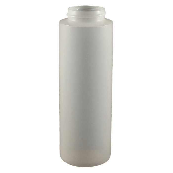 Kaufman Container stocks a complete family of plastic cylinder bottles in both White and Natural. This Natural 8 oz HDPE Plastic Cylinder Bottle has a 38-400 neck finish and is packed 336/case. These plastic cylinder bottles are great for personal care, household chemical and pet/vet products.