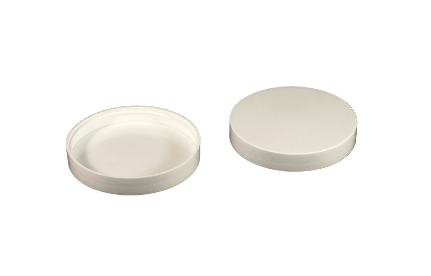Kaufman Container supplies a variety of plastic caps and closures including screw caps, dispensing caps and child resistant caps. This 89-400 White PP Plastic screw cap has a smooth skirt, a smooth top and a PE foam liner. Due to the polypropylene plastic material, this cap has a high heat resistance and good chemical resistance. Plastic screw caps are also referred to as continuous thread caps or CT caps.