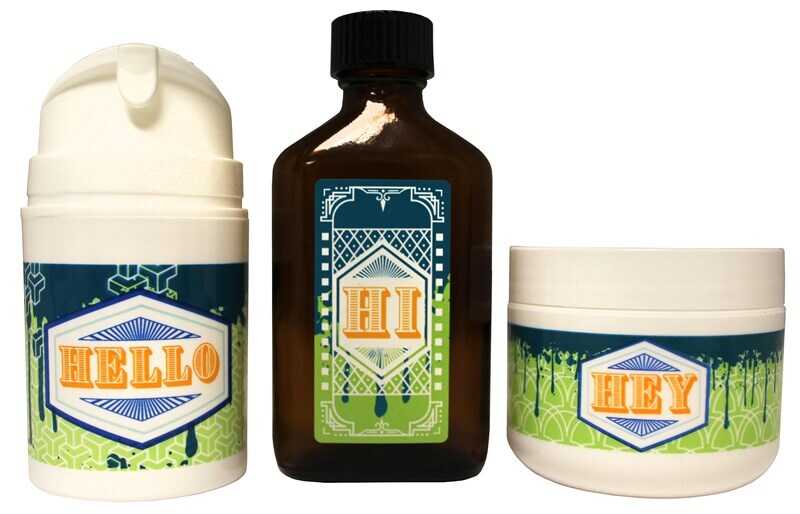 - 2 oz Double Wall PP Jar: For this plastic jar, we decided to once again screen print 5 colors and utilize the same metallic hot stamping foils. Similar to the airless pump & bottle, we also screen printed the plastic cap 1 color. This was also completed on our servo-driven automatic machine.