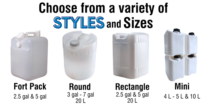 Also known as Jerricans, tight head containers or tight head pails, these durable plastic containers are an alternative packaging option to UN rated pails. Our Jerry cans are safe, secure, stackable and UN rated. Other benefits can include less product loss, shortened lead times, sustainability and brand differentiation.