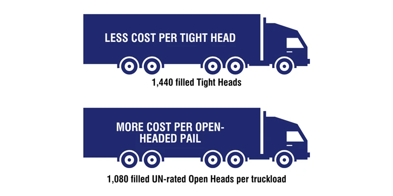 When compared to 5 gallon UN Pails, our 5 gallon Jerry cans are a superior packaging solution. Not only do they perform better on fill lines, but they also reduce the potential of spillage during transport. The biggest difference maker between the two styles of packaging is that jerry cans are stackable. This increases the number of filled tight heads you can fit on a pallet and significantly increases the number of tight heads you can fit on a truck. As your volume of product increases, jerry cans will continue to save you over 30% on total packaging spend.