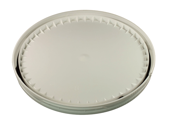 Kaufman Container stocks a variety of gallon buckets (pails), plastic tubs and lids. This White HDPE plastic 3.5 gallon bucket lid can be paired with Bucket #1033107. This 3.5 gallon bucket lid includes a tear strip for tamper evidence and a gasket.