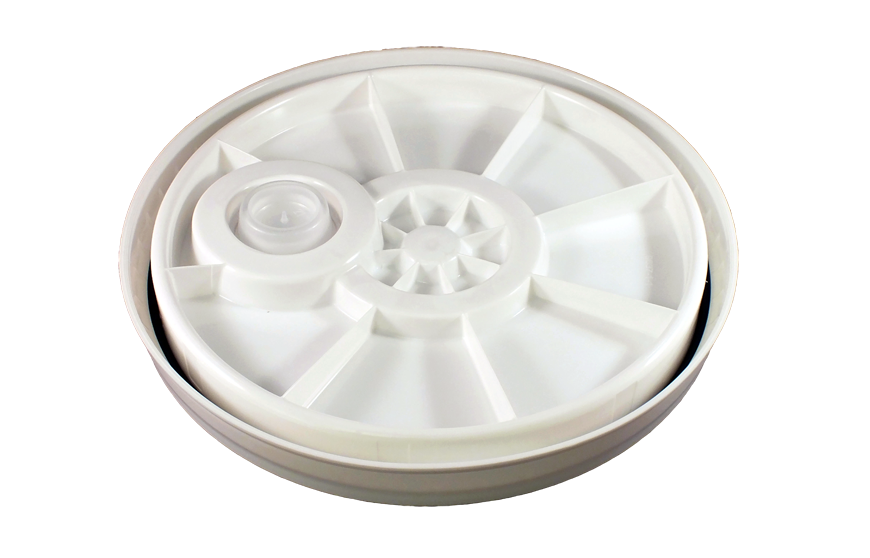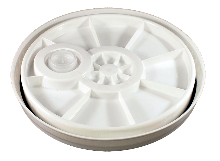 Kaufman Container stocks a variety of gallon buckets (pails), plastic tubs and lids for buckets. This UN certified White HDPE plastic 5 gallon bucket lid can be paired with Bucket #1025764. This 5 gallon bucket lid includes a tear strip for tamper evidence and a gasket. MOQ: 6,240 lids